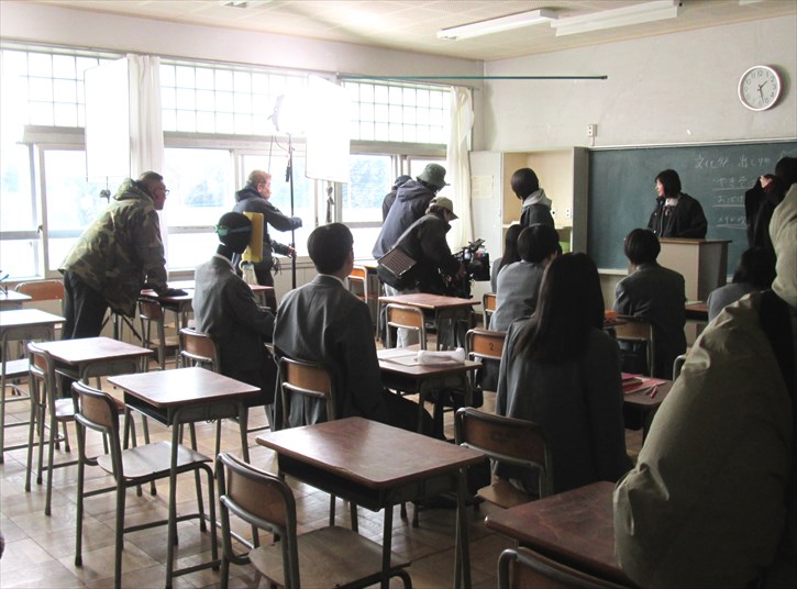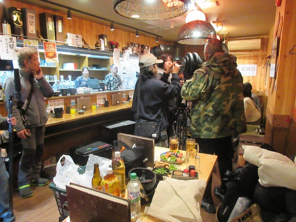 2月13日(金)に、旧拝島第四小学校と、拝島駅前商店会の居酒屋・浜焼太郎さんの2ヵ所でCM撮影を行いました。エキストラとして市民サポーター6名の方に、高校生役と居酒屋のお客さん役を演じていただきました。同日に市内2カ所での撮影や、市民サポーターの方が参加するなど、昭島の強みを活かしたロケになりました。